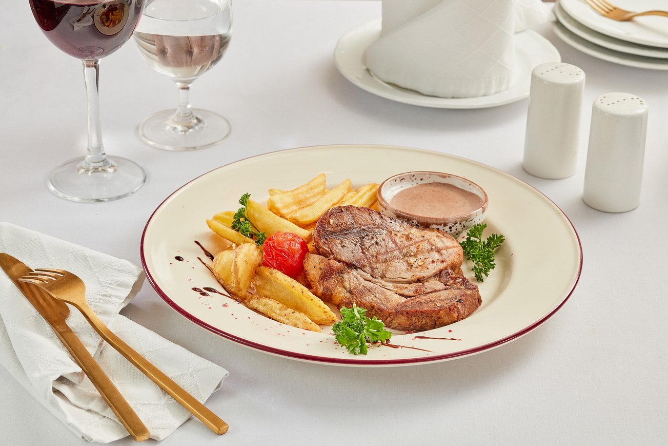 Филе-миньон с томатами гриль и картофелем