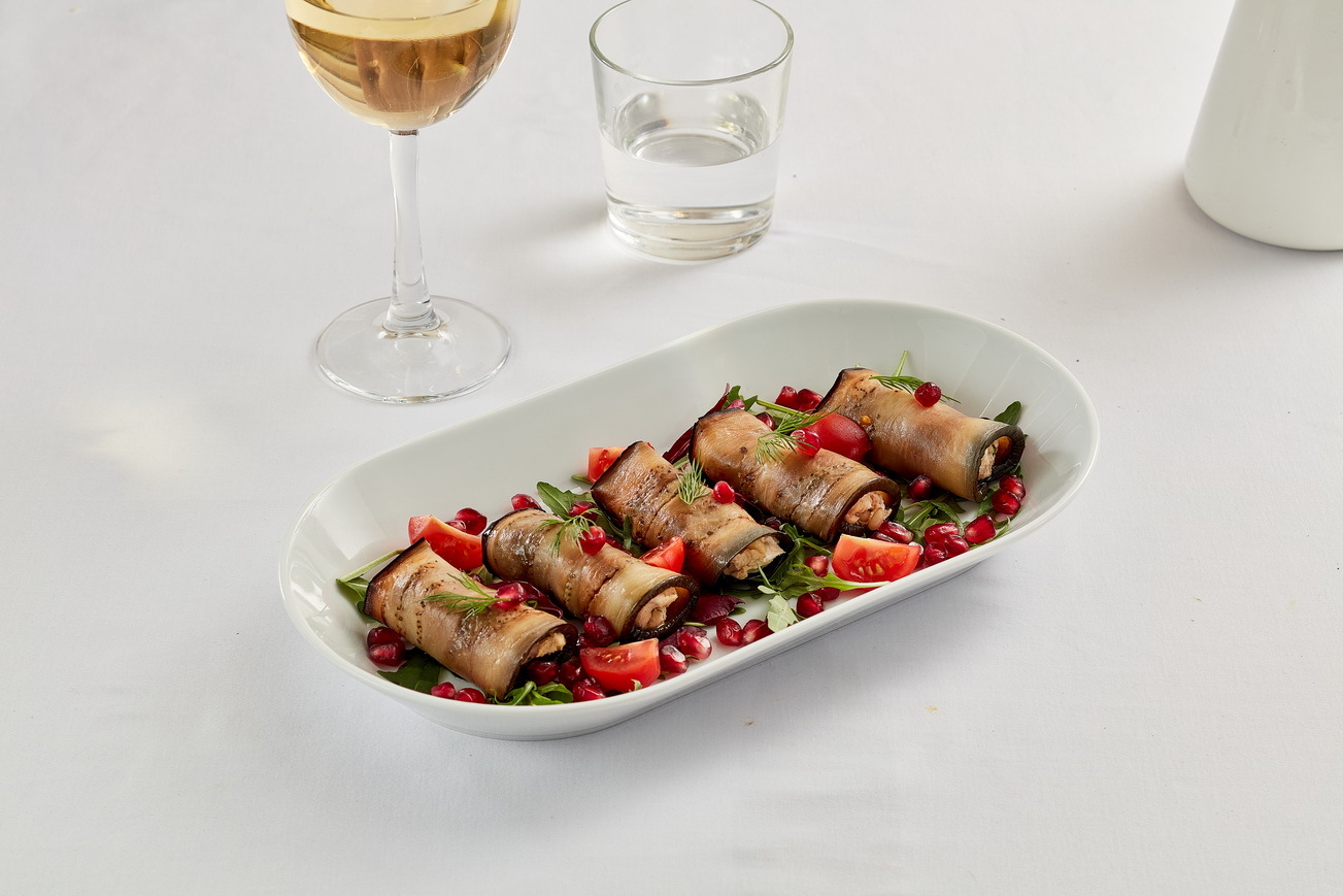 Рулетики из баклажана с ореховым соусом